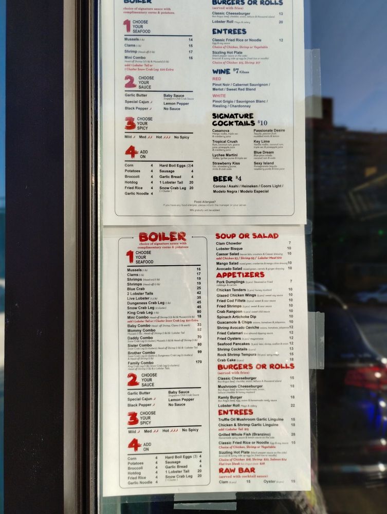 - Seafood Boils: Indulge in an impressive Seafood Boil featuring King Crab Legs or Dungeness Crab, all paired with a choice of signature sauces and complimentary corn and potatoes.